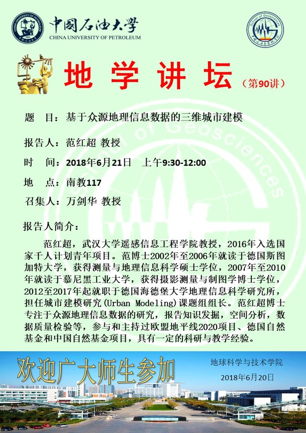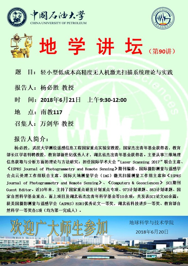 【地学讲坛第90讲】关于武汉大学杨必胜、范红超教授的学术报告通知