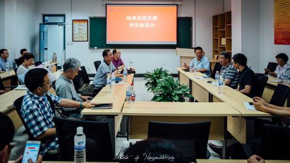 重温入党誓词,听老党员讲故事。邀请老党员、山东省教学名师、退休教师戴俊生教授回到地质系党支部,与所有党员一起重温入党誓词。戴俊生教授讲述了他的个人从教经历,并结合教学科研工作,深入剖析了作为一名党员如何在实际工作中严格要求自己,并起到党员的模范带头作用。各位党员教师先后发言,热烈讨论,深情回顾了老一代教师艰苦奋斗、勇于拼搏的奋斗历程,激励青年教师不忘初心、牢记使命、积极进取、甘于奉献,传承地质工作者的优良作风和传统,汲取精神力量,不断武装自己,为地学发展贡献力量。