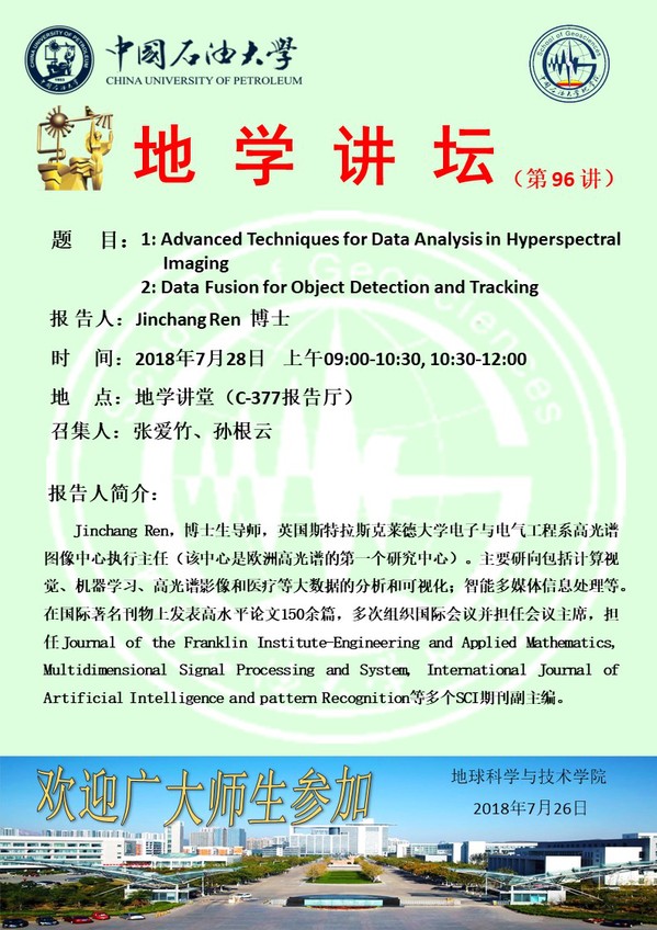 【地学讲坛第96讲】关于Jinchang Ren 副教授的学术报告通知