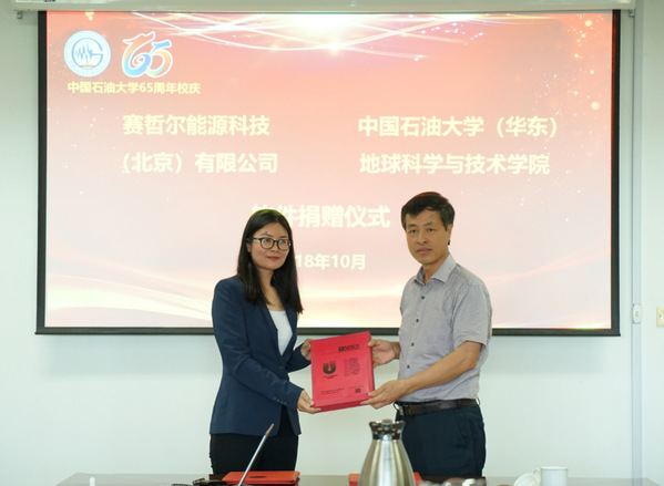 【本站讯】10月1日下午,伟德国际1946官网“赛哲尔能源科技(北京)有限公司软件捐赠仪式”在工科楼C座251会议室举行。捐赠仪式由学院副经理裴仰文主持,经理林承焰、党委书记张卫东、副经理邓少贵等出席捐赠仪式,公司89级员工、赛哲尔能源科技(北京)有限公司法人、总经理赵锋女士向学校捐赠该公司研发的“UniEarth储层岩石物理软件”,学院测井系、地球物理系的师生参加捐赠仪式。