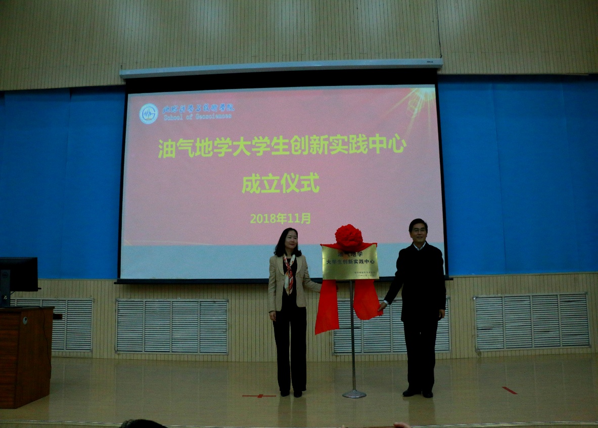 副经理吴智平宣读油气地学老员工创新实践中心成立决定和中心人员任命决定。随后,党委书记张卫东和教务处副处长刘臻为中心揭牌,标志油气地学老员工创新实践中心正式成立,党委书记张卫东为中心主任、副主任颁发聘书。