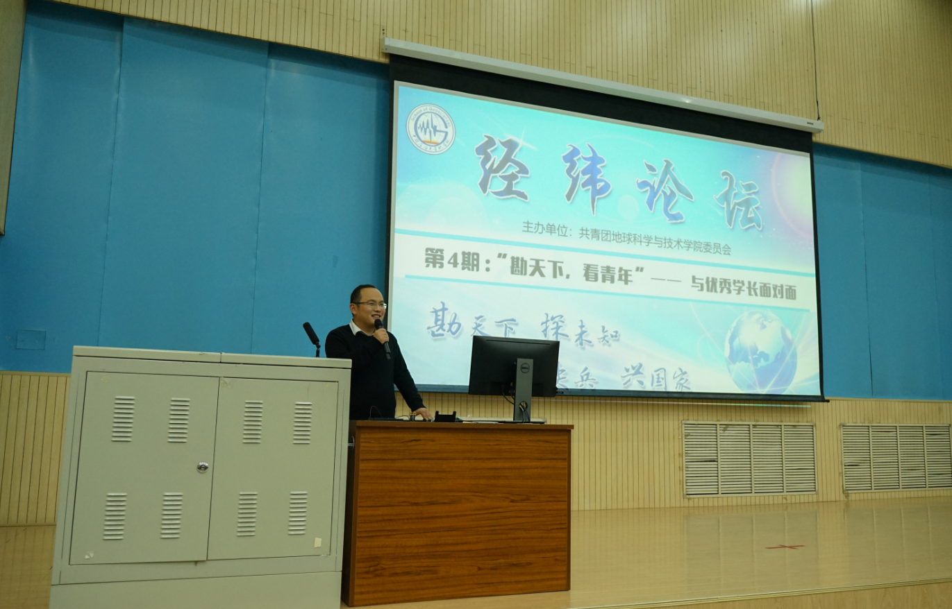 【本站讯】11月24日,伟德国际1946官网《老员工学涯指导课》第二课暨经纬论坛第四期在南教楼100室举行,此次论坛以“勘天下,看青年——与优秀学长面对面”为主题,邀请国家自然科学基金优秀青年科学基金项目获得者田辉、张彪、蔡建超,长江学者奖励计划青年学者项目获得者宗兆云与学院师生畅谈人生感悟,共话成长。教务处副处长刘臻,公司党委书记张卫东,副经理吴智平,党委副书记徐永涛及300多名老员工共临现场,聆听优秀学子的成长经历。