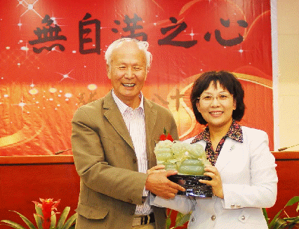 图四八十寿辰纪念会上,山红红董事长代表学校赠送礼物