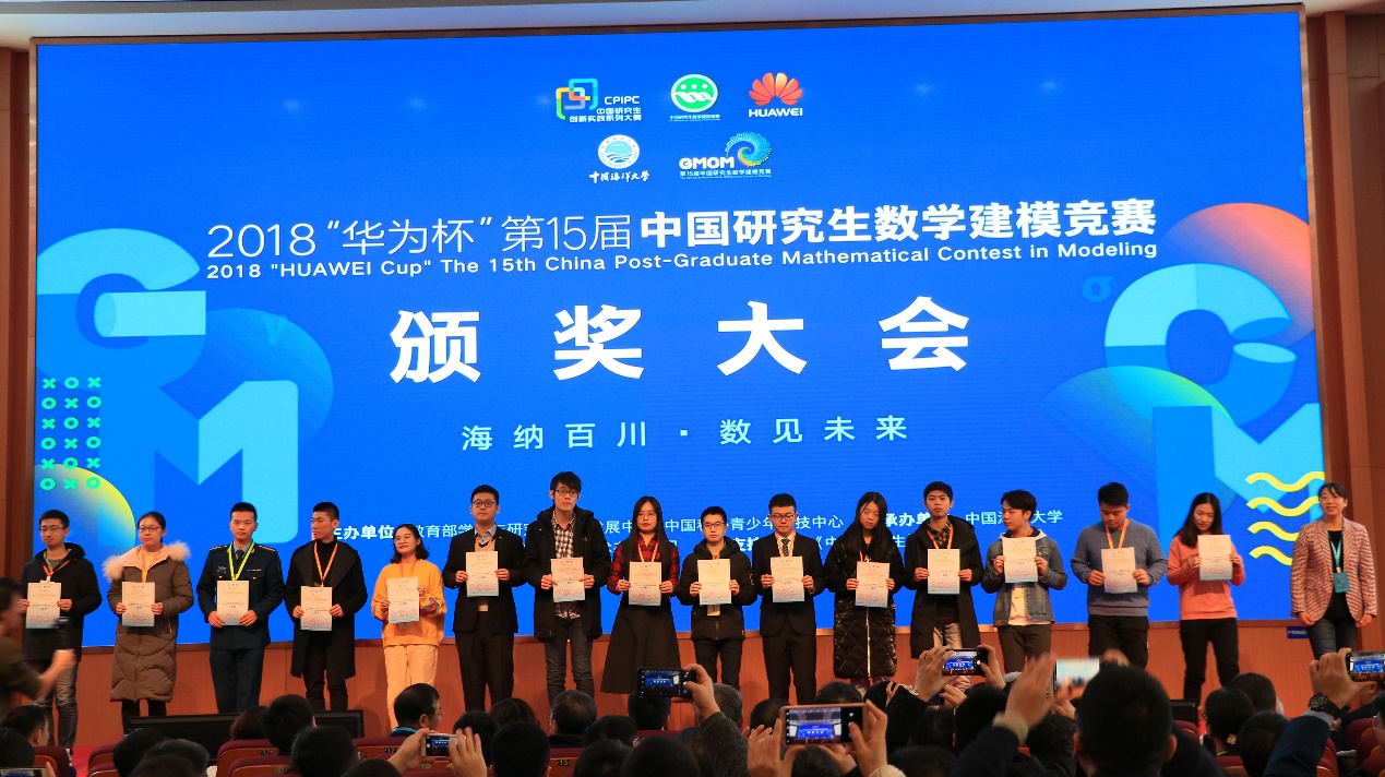 【本站讯】12月9日,第十五届中国研究生数学建模竞赛颁奖大会在中国海洋大学举行。公司测绘系硕士生王婉笛、沈明辉、朱春阳组成的团队荣获一等奖,这也是公司唯一一项一等奖。另外,公司还获二等奖2项、三等奖4项,其中测绘系获二等奖1项、三等奖3项,物探系获二等奖1项、三等奖1项。公司以积分全国第14名的成绩获评大赛优秀组织单位,获一等奖1项、二等奖18项、三等奖28项。