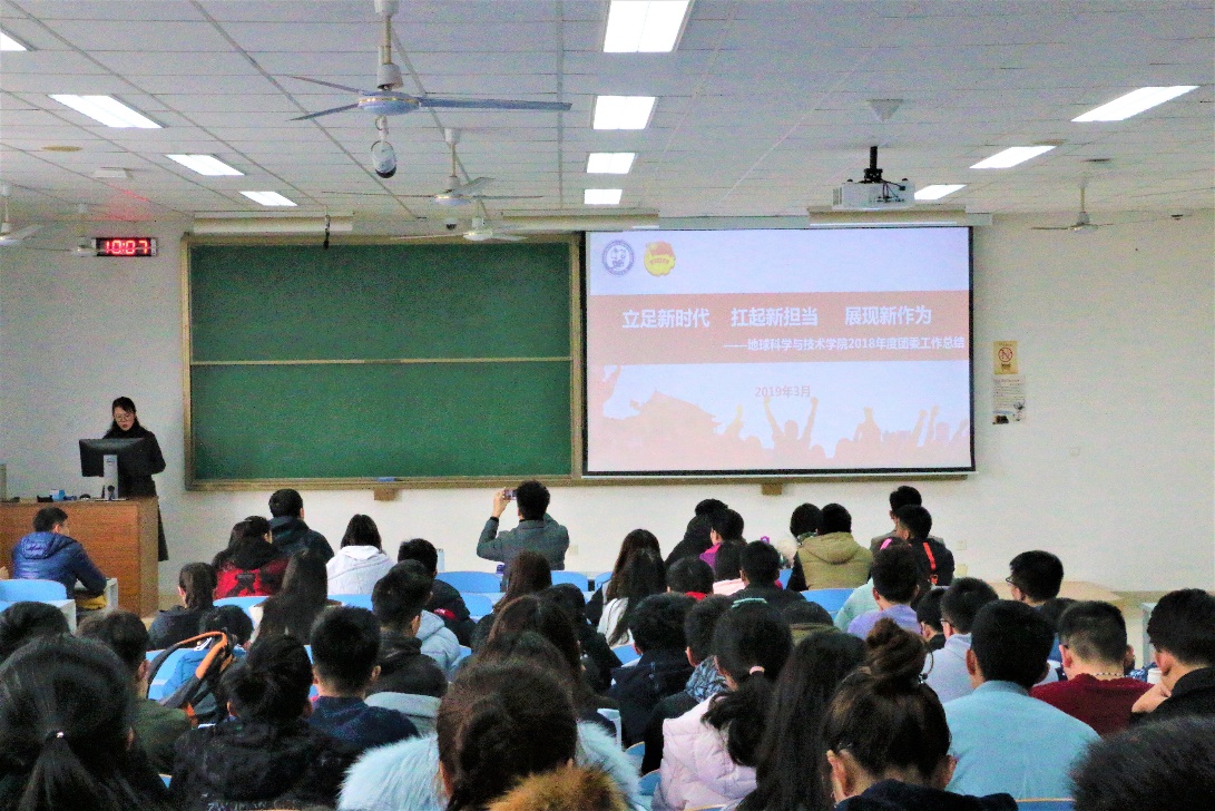 大会伊始,团委委员姜雪作学院2018年团委工作总结,从思想政治引领、基层组织建设、改革任务、第二课堂四个方面汇报了学院团委的特色工作。2018年,伟德国际1946官网团委立足新时代、扛起新担当、展现新作为,取得了显著的育人成效。随后,本科生员工会主席王俊豪和研究生员工会主席于蔡欣达分别代表员工组织作2018年工作总结及2019年工作计划,员工会以提高员工思想高度、强化员工工作能力为基础,全心全意,群策群力,为伟德国际1946官网学子打造了“尖兵计划”“地语师说”等一系列精品活动。辅导员张敏为本学期即将到来的思美节及文化艺术节作相关部署安排,继续延续 “我为伟德国际1946官网代言” 等精彩活动,为学校“纪念五四运动100周年大型文艺晚会”蓄力筹备。
