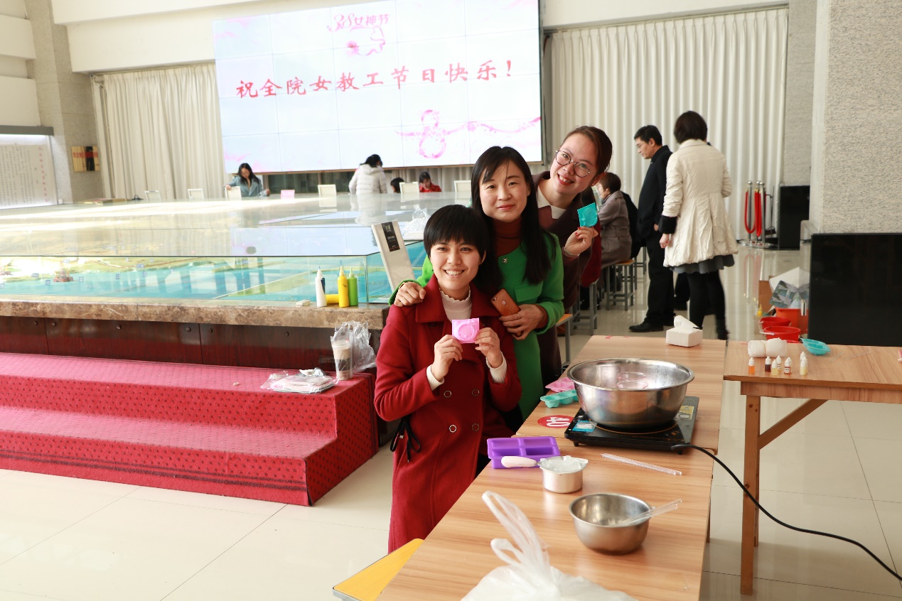 【本站讯】为庆祝第109个国际妇女节,丰富学院女教师的精神文化生活,3月8日伟德国际1946官网在工科C座一楼大厅举办了“精致女人•艺术人生”体验活动。活动由伟德国际1946官网工会组织开展,全院女教工参加。活动前全体女工会员,先进行节日合影。党委书记张卫东、工会主席张军华与女同胞们一起合影。