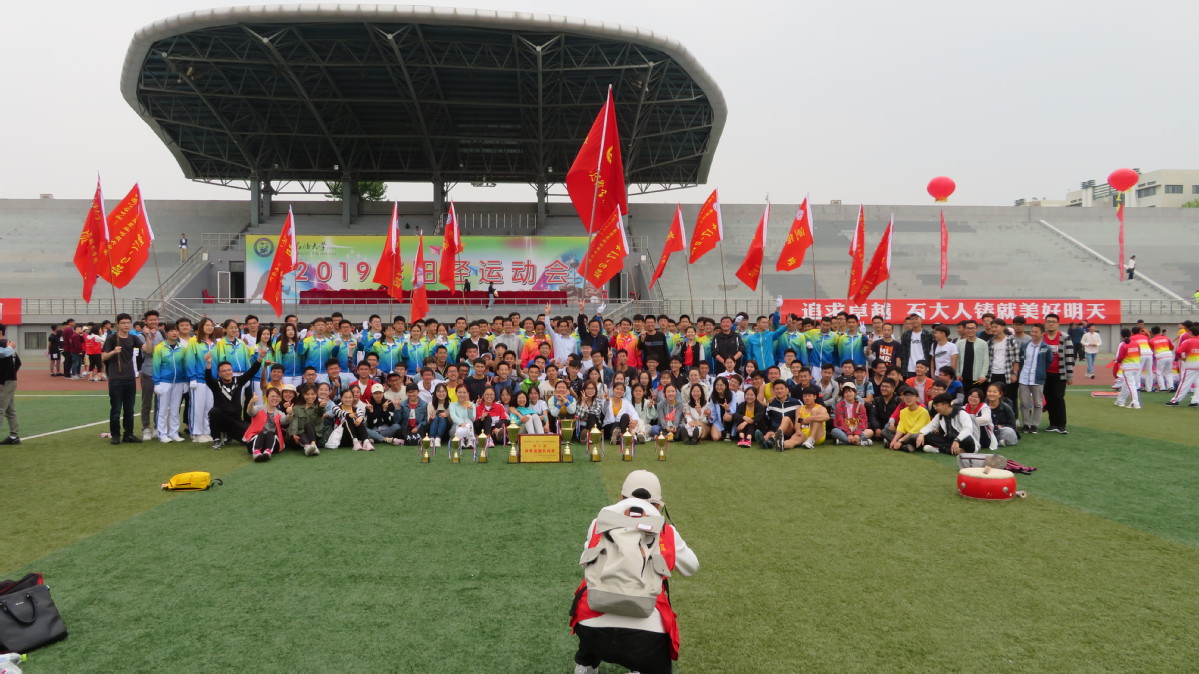 学院大合影(操应长副董事长参加,对广大运动员慰问、祝贺!本届工会是操董事长当经理时成立的,5年了,操董事长每年都与大家合影、给予支持,为校领导点赞!)