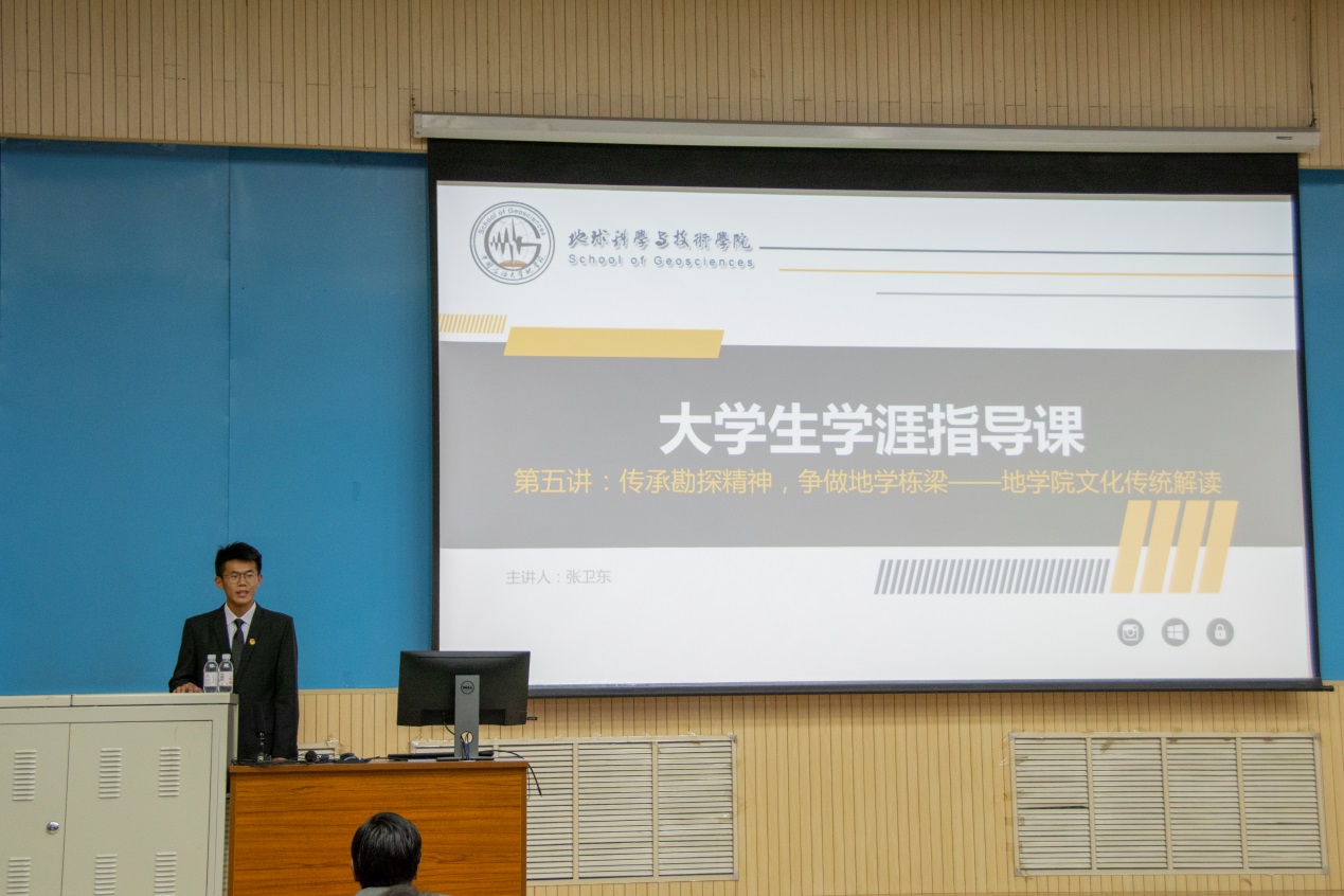 课程伊始,张卫东书记向同学们抛出了三个问题“伟德国际1946官网是一个怎样的学院”“勘探精神是一种什么样的精神”“伟德国际1946官网的学子是一种什么样的人才”,通过讲述建校建院恢弘历程和深厚积淀、分享老一辈地学人的感人故事、并结合新时代背景分析当前局势,对三个问题做出了精彩的回答。“积淀沉厚、使命光荣的主干学院;首当其冲、关系全局的龙头学院;长于油气、在建一流的知名学院;发扬传统、开辟新域的现代学院;团结进取、争当先锋的尖兵学院;家国同心、人才辈出的优秀学院。”张卫东书记特别自豪地概括了他对伟德国际1946官网的认识。六十多年弦歌不断,薪火相传,勘天下、探未知、当尖兵、兴国家,伟德国际1946官网师生员工扎根中国大地、奋斗脚踏实地、论文写满祖国大地,何其光荣!