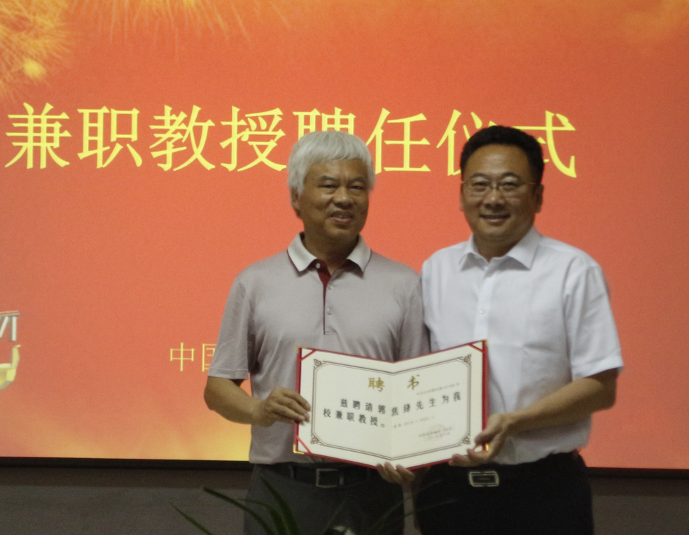 操应长为郭焦锋、周锦明颁发兼职教授聘任证书。他表示,目前学校正在扎实推进“双一流”建设,亟待人才,渴望人才,希望两位员工在未来更多地参与学校的建设发展,为学校培养更多更好的人才。