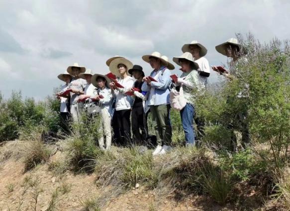 员工们翻过山头寻找地质变迁的遗迹,感叹新奇壮观的地质构造,听老师解读几十米岩层中“沧海变桑田”的故事。走到干涸河谷对岩石取样,在山腰上进行野外测量,在坡顶绘制地质素描,“这几天的实习,虽然每天爬山很辛苦,但是有负责任的老师,有同行的伙伴,真的感到很幸运。”朱坤同学感慨道。