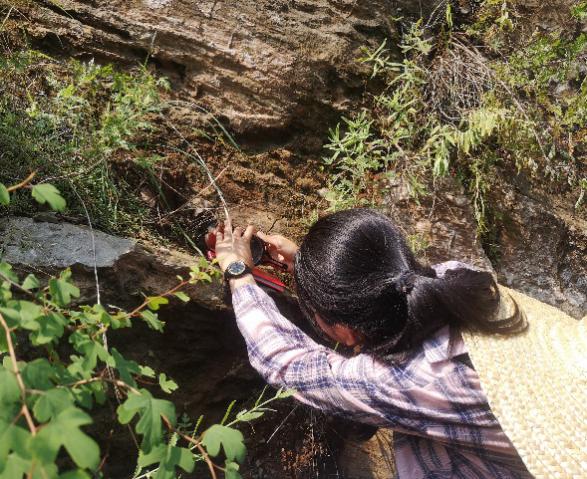 (资源专业员工在测量地层倾角 周宏飞摄)
