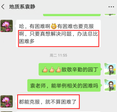 “地质系所有老师及家人身体健康,未返青7人。”“已通过微信、电话、QQ,把学校文件精神传达给2016级每一位同学”这是负责报送信息的老师们每日的工作日常。“必须落实到每一个人的情况才算安心!”辅导员霍宁说出了每位老师的心声。