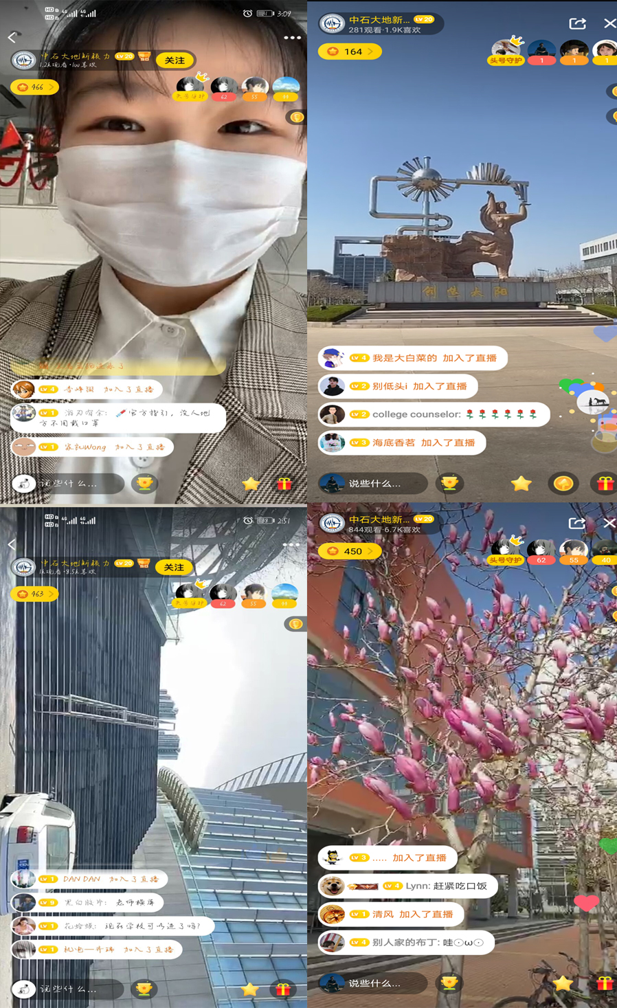 石大春光如期而至,针对疫情阻隔无法按时返校的情况,为一解学院师生的思校之情,学院员工会策划组织了一场“线上游园会”。吹面杨柳风,沾衣玉兰雨。学院辅导员范静蕾通过QQ直播的形式带领石大学子和员工们欣赏“不一样的石大春天”。共同见证学校为保证师生的安全健康正在进行的全力准备。