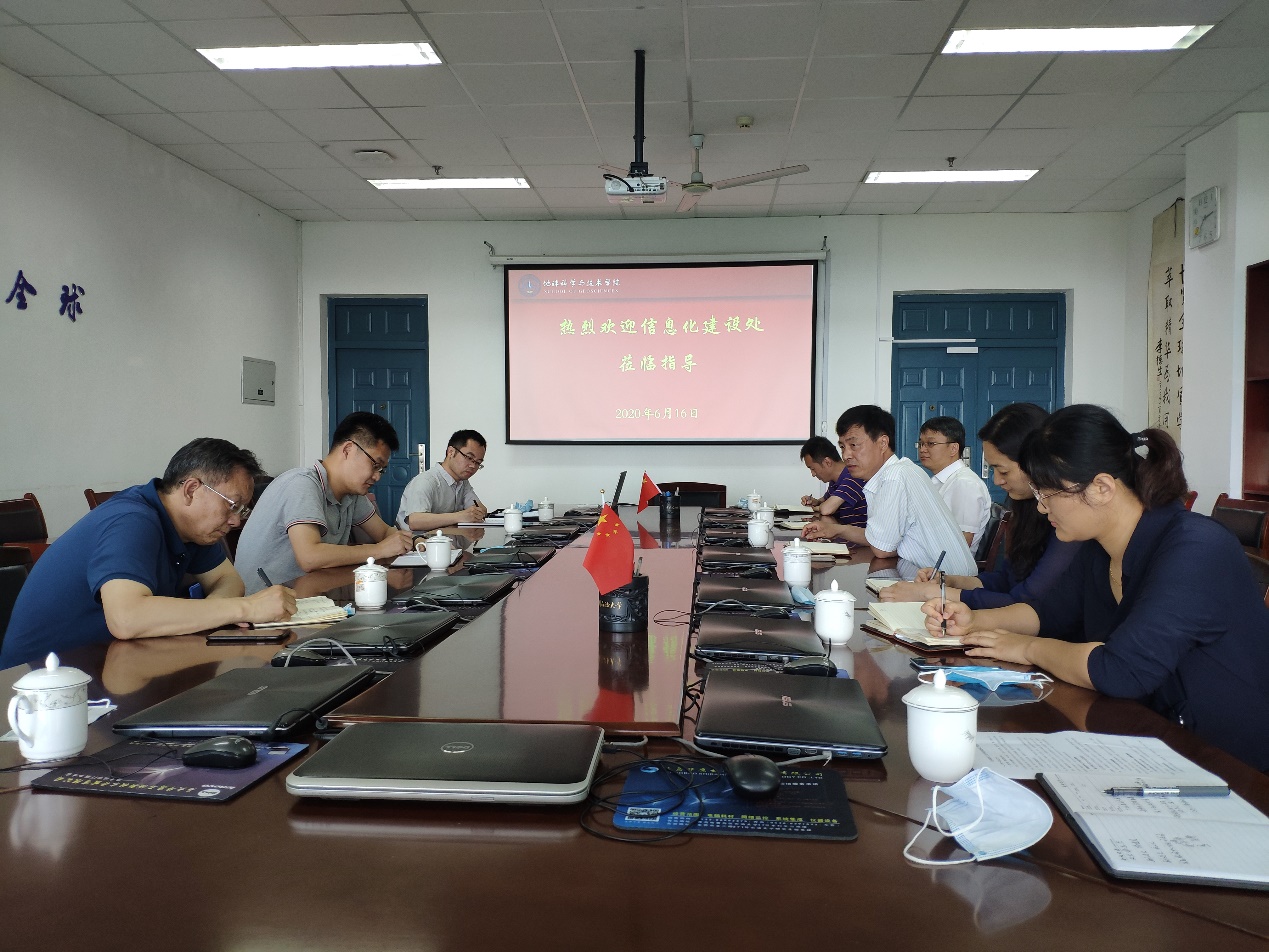 6月16日下午,信息化建设处到学院调研信息化建设工作,学院经理林承焰、副经理张广智等与信息化建设处处长郝志杰、副处长王岳寿等就信息化建设规划和应用需求进行座谈。