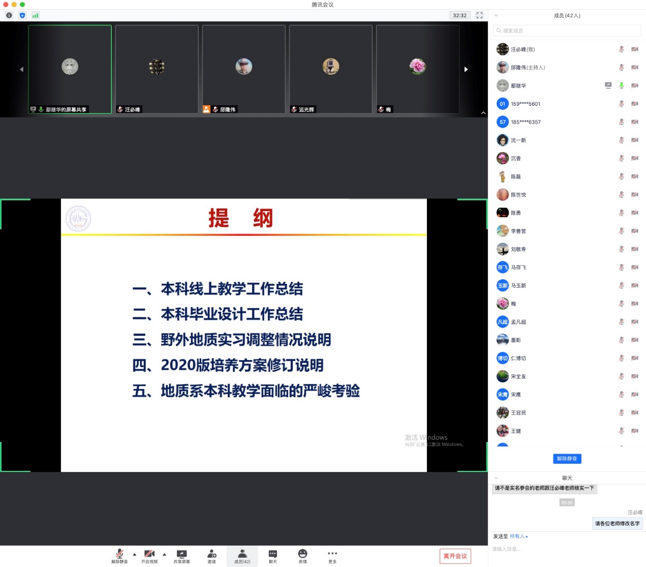 2020年6月29日,地质系以线上会议方式召开上学期总结会。地质系全体教师参加会议,系主任邱隆伟教授主持会议。