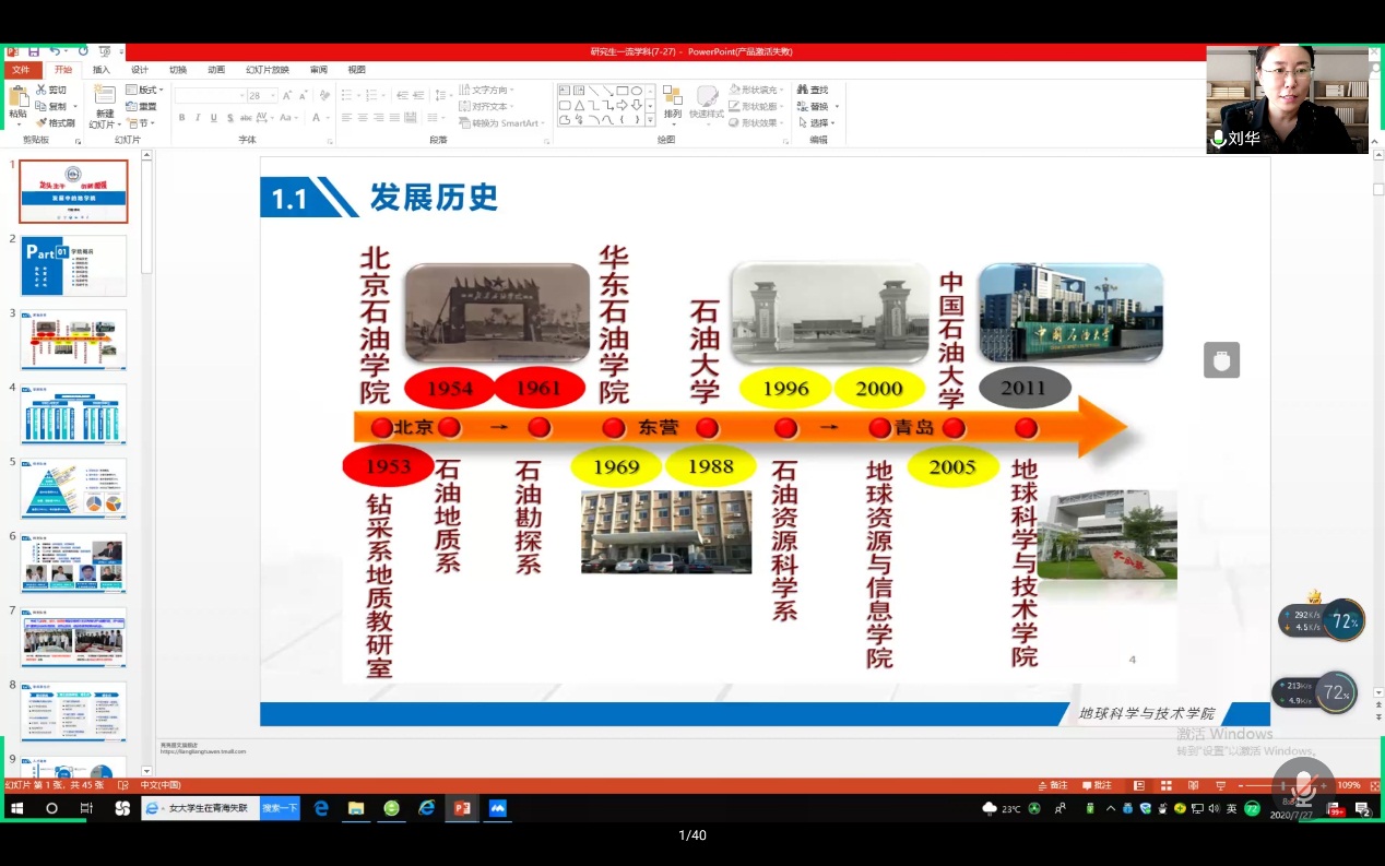 公司党委书记刘华致欢迎辞。她代表学院对参与夏令营的全体同学表示热烈欢迎。随后,刘华书记从发展历史、学院机构、团队队伍、学科学位点、人才培养五个方面对学院的概况进行生动讲解,同时结合近年来学院科研团队连续攻克复杂油气地质勘探难题的成果实例,展示学院的雄厚实力。“伟德国际1946官网作为双一流学科所在的学院,一直为国家能源行业输送大量人才,全国各大油田都能看到伟德国际1946官网学子的身影。”刘华书记讲道“未来几天各位营员将和学院优秀的教师通过“云端”面对面交流,希望同学们在此次夏令营中发挥出色,崭露头角,脱颖而出。”