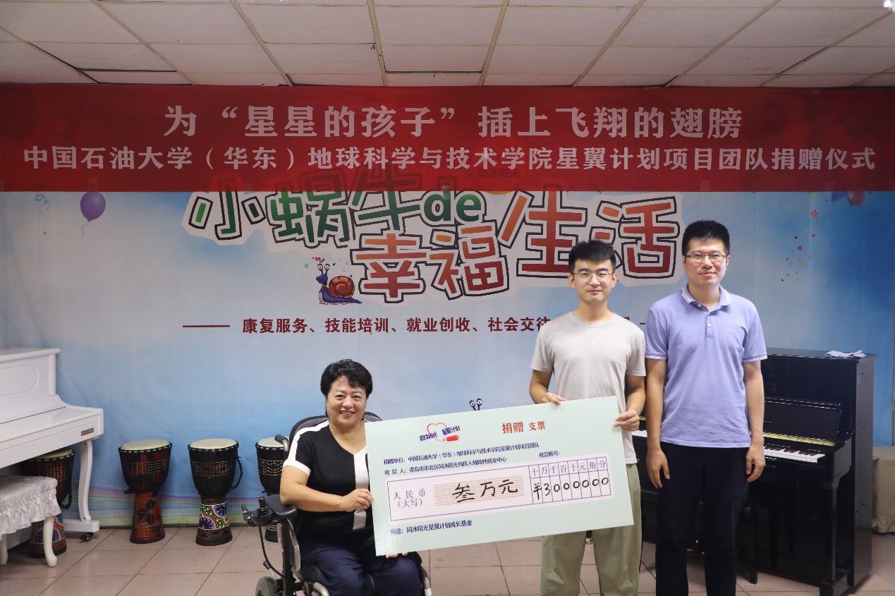 9月2日,学院星翼计划团队捐赠仪式在青岛市市北区同沐阳光残疾人辅助性就业中心举行。星翼计划团队捐出其在山东省第五届“互联网+”老员工创新创业大赛所获金奖的30000元奖金,设立星翼计划成长基金,支持更多大龄自闭症青年实现“康复+就业”。