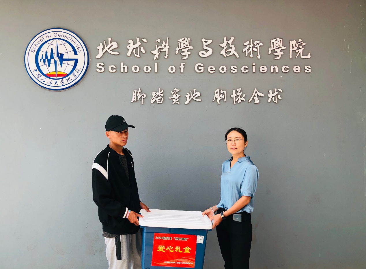 公司党委书记刘华为新生赠送爱心礼盒 徐明权摄影