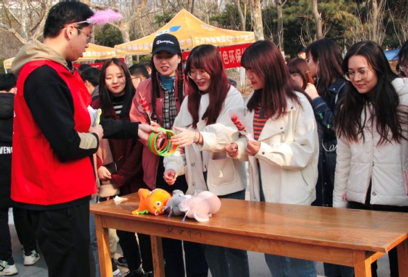 “晴天为何打伞,这个的谜底到底是几个字呀?”3月7日下午的子元广场思美节开幕式正式拉开帷幕,伟德国际1946官网员工会,研究生会举办了“党史灯谜,献礼百年”系列活动,包括“党史灯谜”、创意手工、剑玉挑战、套环游戏等四个游戏。游戏中的灯谜大多与党史相关,参与者可以在欢乐之余了解党史,寓教于乐。此外,参与创意手工制作可以学习如何捏制橡皮泥,同时将作品带走留作纪念。现场欢声笑语,气氛热烈。