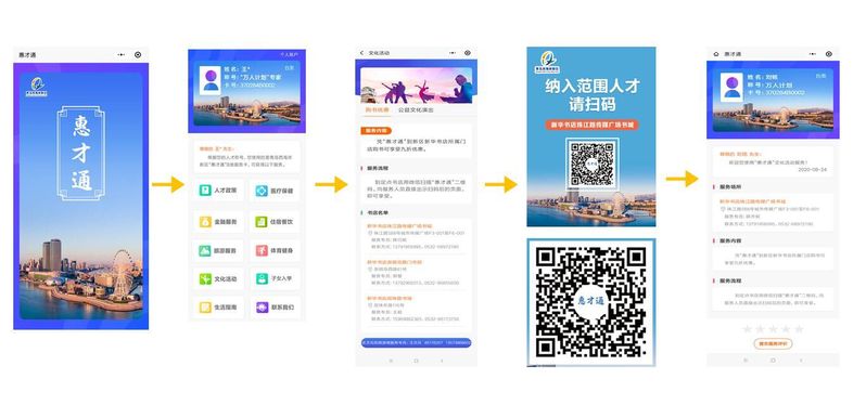 人才在微信小程序搜索“西海岸惠才通”,登录账号,到服务场所扫码即可享受相关服务。