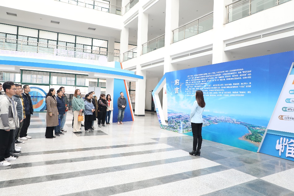 在讲解员的带领下,全体师生步入学校讲堂群大厅,一起参观了“十三五”成就区、“十四五”展望区、实物展示区、学院风采和互动区五个展区。其中,“十三五”成就区分别从“学科总体水平显著提升”、“人才培养能力和水平稳步提高”、“高层次人才引育成效突出”、“科研创新能力显著增强”等十大方面全面展现学校近五年来的发展情况,深入细致地总结了学校“十三五”取得的辉煌成就。实物展示区通过30多件实物的集中展示,再现了“十三五”期间学校在各个领域取得的荣誉,让全体师生深刻感悟石油精神和石大精神。“十四五”展望区详尽地描绘了“十四五”宏伟蓝图,学校从指导思想、八大发展目标、八大重点工程和四大保障体系四大方面进行详细规划部署,确保“十四五”开好局,起好步,彰显了在新时代服务国家能源战略的责任担当。