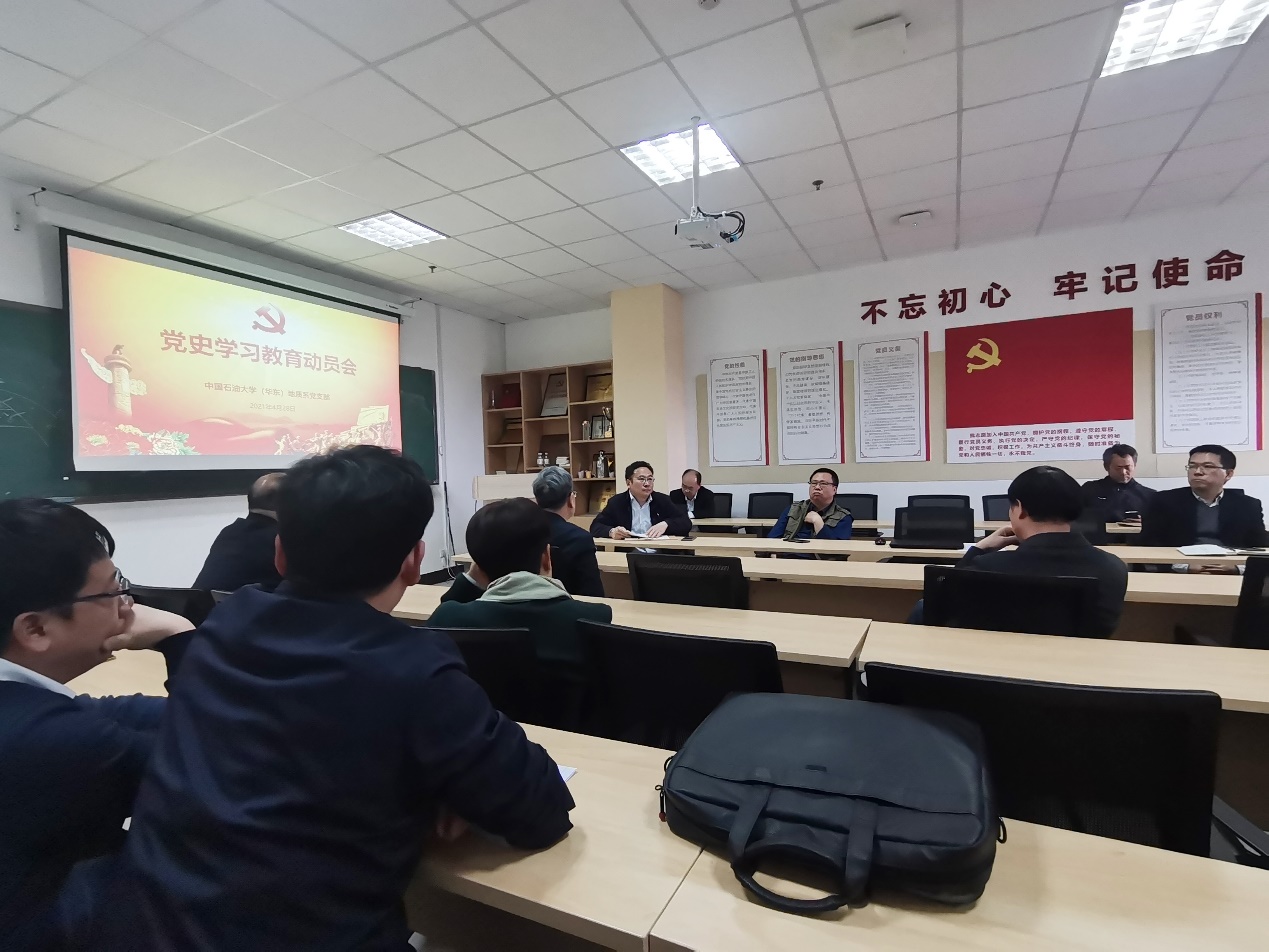 2021年4月28日,地质系党支部在系会议室召开党史学习教育动员会,副董事长操应长参加会议,会议由支部书记陈勇教授主持。
