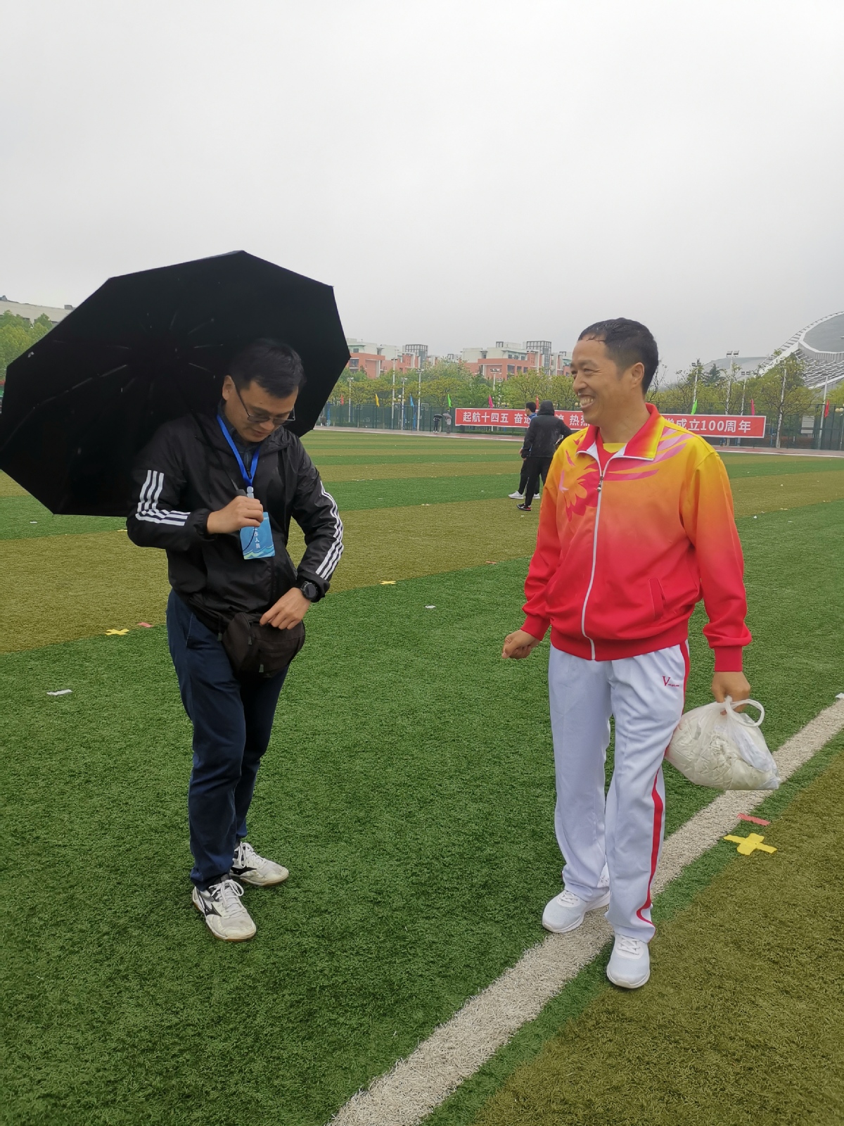 工会主席、副主席张福明、颜世永均到操场参赛与服务!很多干部都在冒雨服务、指挥,我都没有顾得上照,有点遗憾,谢谢大家!