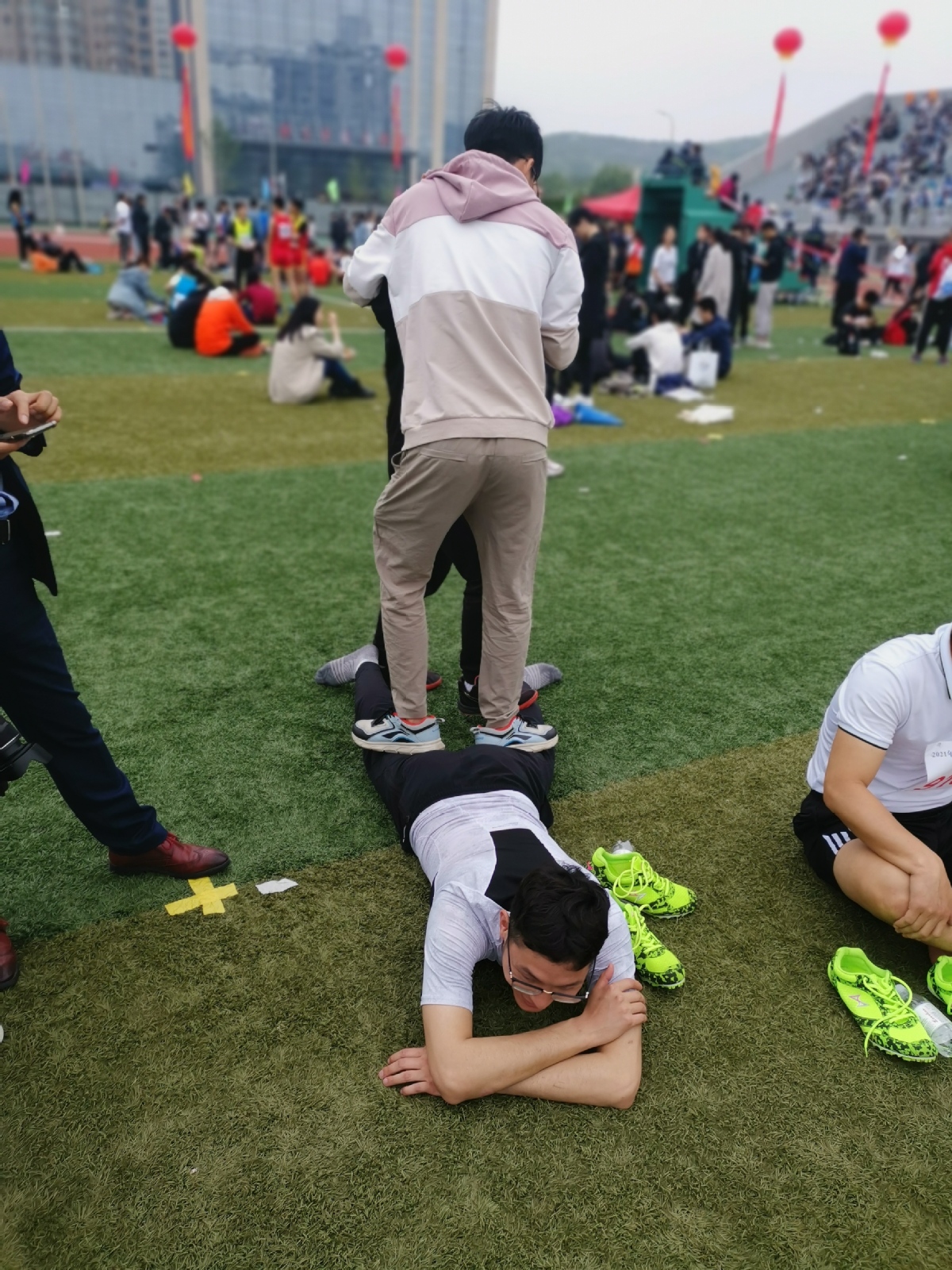 看看背景里,两人架着的运动员,大家都是为了单位的荣誉在拼,要是为了个人谁愿意为这拼老命!