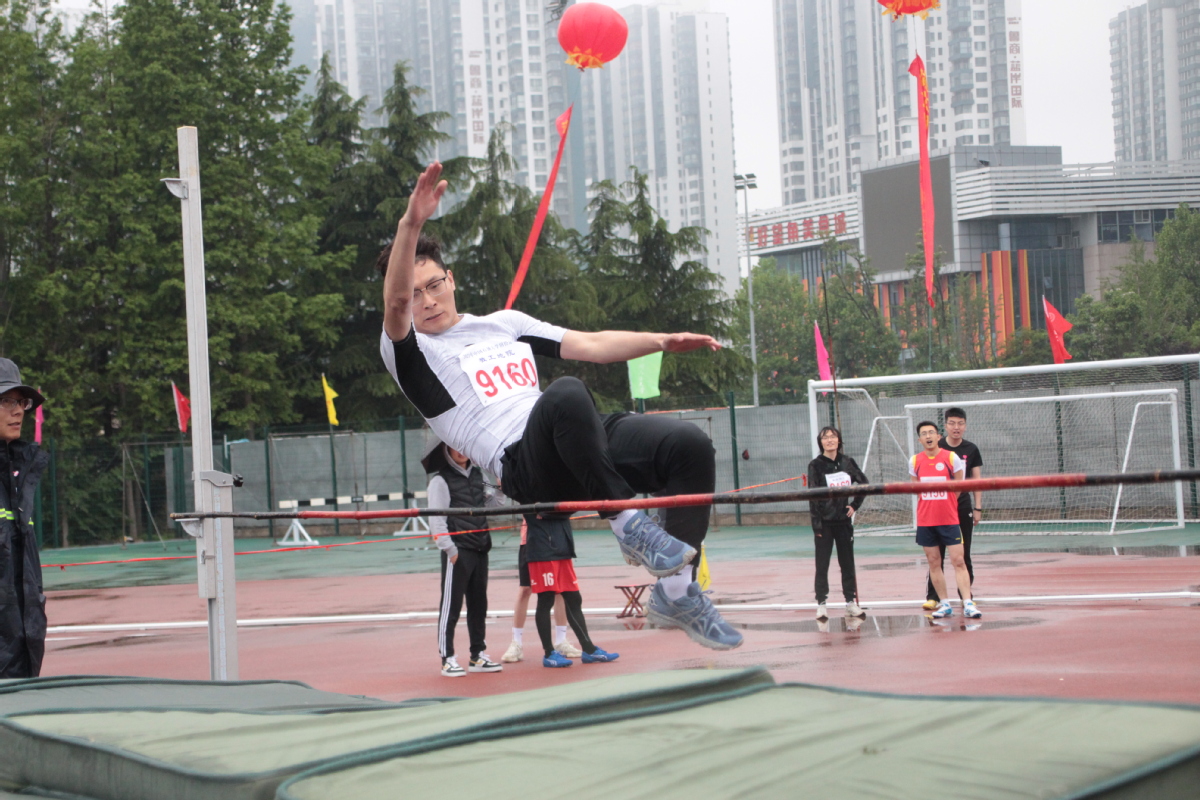 保研辅导员李文豪在跳高,跳高、跳远都拿了名次,还跑两个接力冠军,素质非常好,值得表扬!