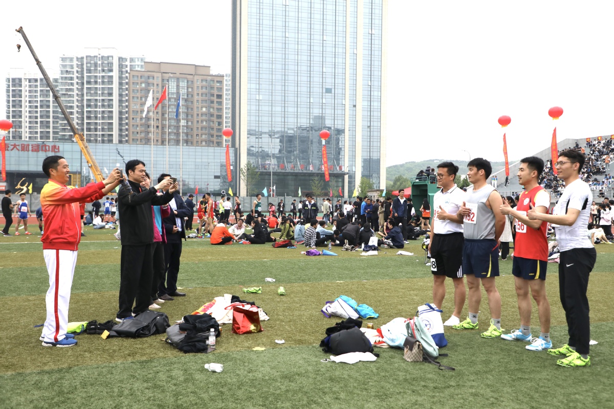 在我的鼓动下,跳远的老哥们与裁判们合了个影!