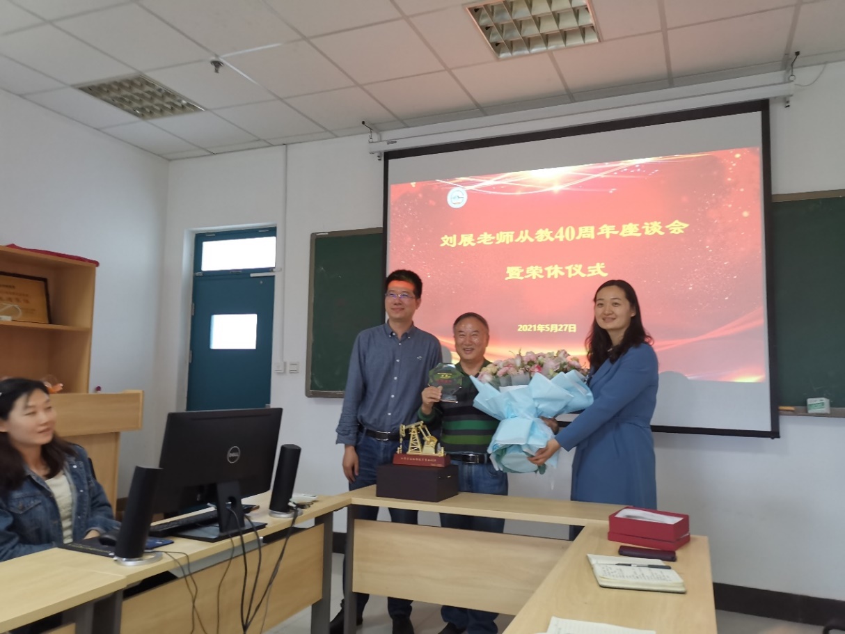 5月27日下午,地球物理系在系会议室隆重举行刘展教授从教40周年座谈会暨荣休仪式。公司党委副书记徐永涛、办公室主任郑珊珊、地球物理系教师代表以及刘展教授在青员工参加座谈会,会议由地球物理系主任李振春教授主持。