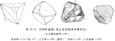 闪锌矿晶体(具正负四面体的聚形纹)((潘兆橹等,1993))