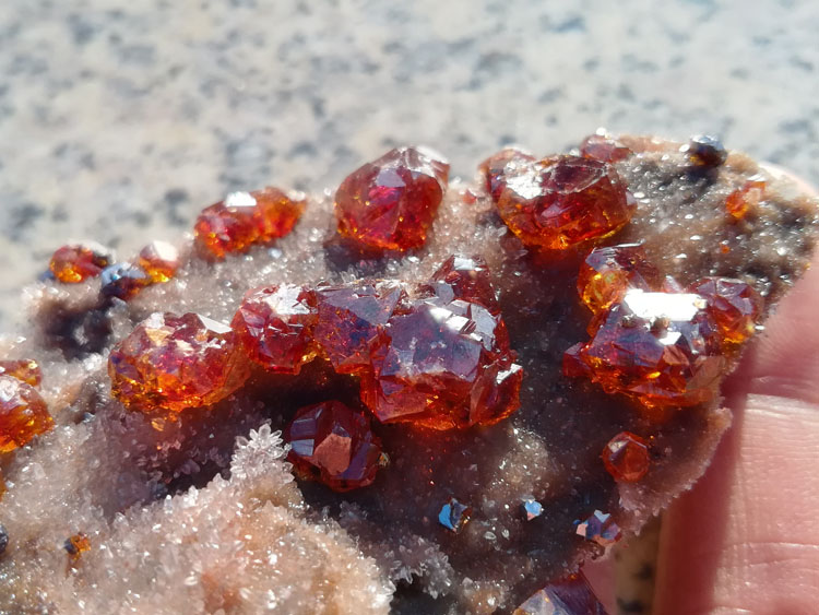 [物理性质]橘红色,条痕淡橘红色;晶面上具金刚光泽,断面上出现树脂光泽,透明至半透明。解理平行{010}完全。硬度1.5-2。相对密度3.6。性脆。长期受光作用,可转变为淡橘红色粉末。