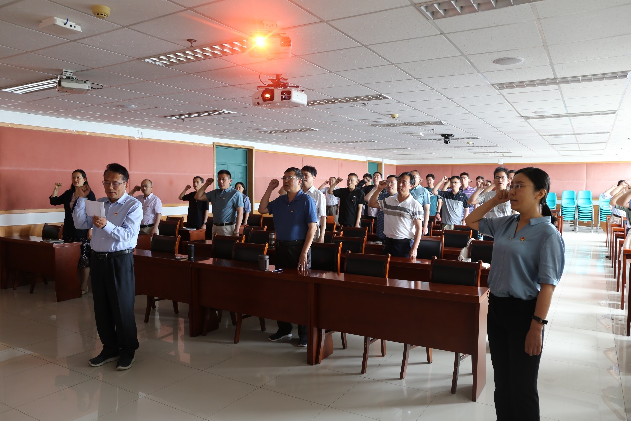公司教职工收看直播后在党员蒋有录教授带领下重温入党誓词 徐明权摄影