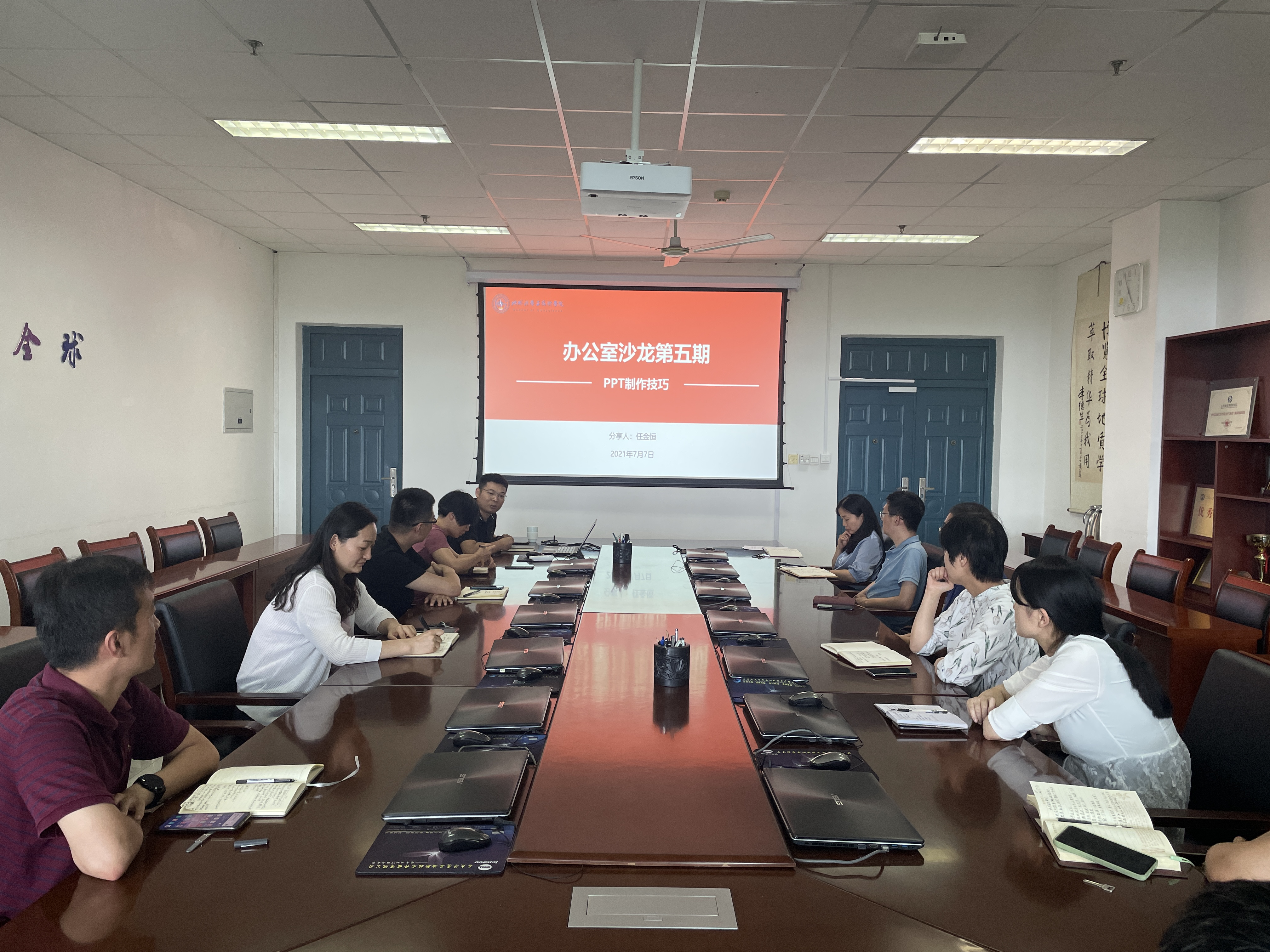 “在设置幻灯片放映里面有不加动画的选项,这样播放时就不会被意料之外的动画困扰……”为提高机关工作人员PPT制作水平,7月7日下午,学院在工科楼C座251会议室举行办公室沙龙第五期,邀请辅导员任金恒分享PPT制作技巧,机关全体成员参加。
