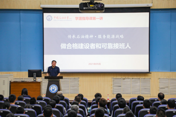 “加大国内油气勘探开发力度,保障国家能源战略,关键要靠理论创新和技术攻关,这需要在座的同学们把学习、科研融入到建设祖国的远大理想和实践中去,担当更大责任、贡献更大力量。”9月13日晚,学院2021级本科生新生第一堂学涯指导课在南教楼100号拉开帷幕。国家百千万人才工程入选者、教育部“新世纪优秀人才支持计划”入选者、公司副董事长操应长教授以《传承石油精神,服务能源战略,做合格建设者和可靠接班人》为题,引导员工正确认识行业大势和国家能源战略,强化使命担当,勉励员工努力成长为可堪大任的新时代青年。近300名本科生新生现场学习,以饱满的精神状态拥抱老员工涯的到来。