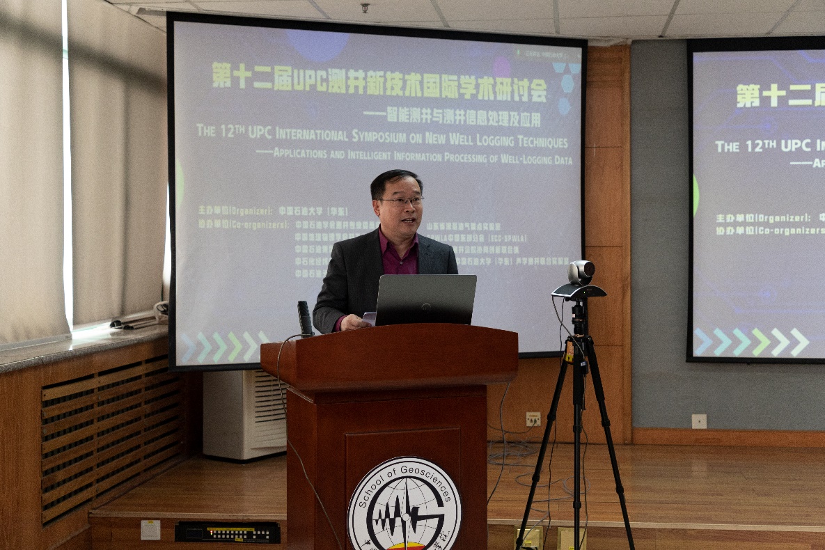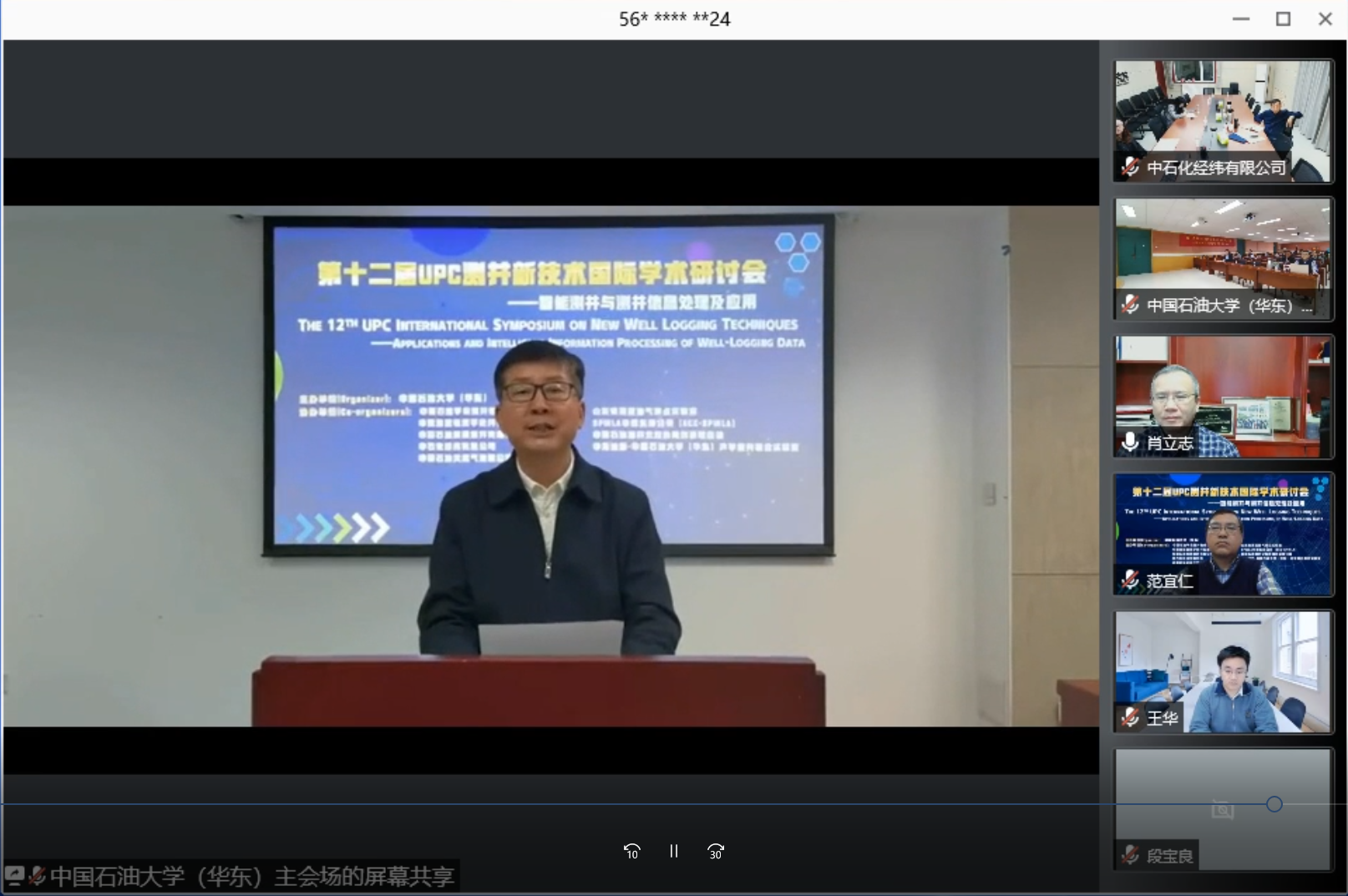 开幕式由学院经理刘华教授主持。开幕式上,学校副董事长姚军教授致欢迎辞,他代表学校对研讨会的召开表示祝贺,对参加会议的代表表示欢迎,并感谢油田现场及世界各地专家学者长期以来对学校人才培养和学科发展等方面的支持和关心。他指出,人工智能、大数据和云计算等作为新一轮工业革命的关键性技术,已逐渐成为油气产业变革的“新引擎”,研讨会以“智能测井与测井信息处理应用”为主题,较好地契合了国家工业4.0智能化发展战略,必将对学校“双一流”建设和更好地服务于油气勘探开发起到积极的助推作用。姚军副董事长充分肯定了测井行业近几年在科技进步、资源整合、校企合作等方面的亮眼表现以及公司测井学科在科研及人才培养等方面的优异成绩。在开幕式上致辞的代表还包括中石油集团公司科技管理部总经理匡立春教授、中石油集团测井有限公司副总经理陈锋教授级高工、中石化经纬有限公司副总经理潘军教授级高工和SPWLA副主席Harry Xie博士,嘉宾们纷纷感谢公司在新冠疫情期间为测井界同行们提供的国际学术盛宴。