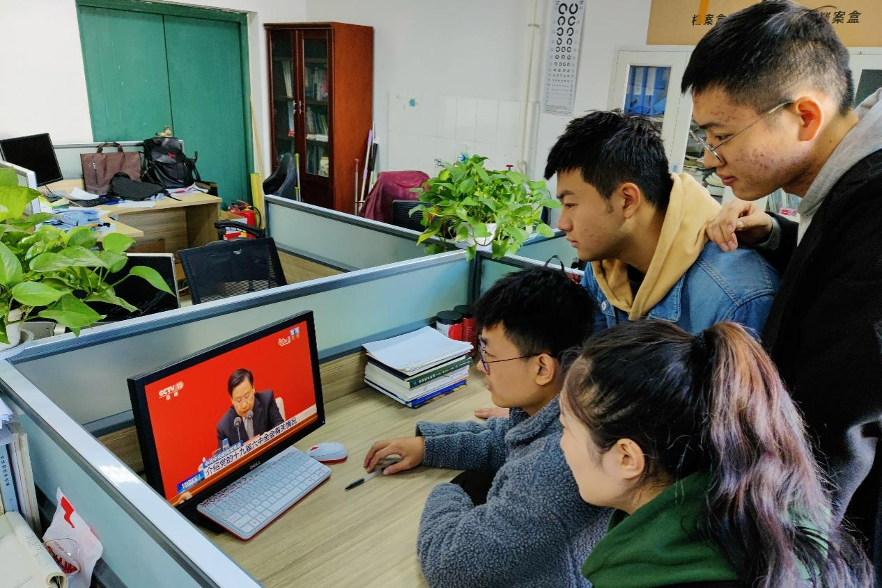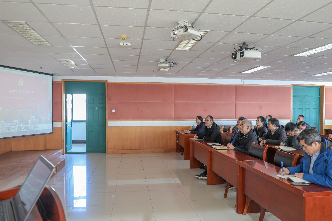 11月12日,中共中央举行新闻发布会,介绍党的十九届六中全会精神。公司党委及各基层党支部通过集体收看、个人观看、学院大厅宣传屏同步直播等多种形式,组织学院教职工党员、员工党员收听收看新闻发布会现场直播,学习全会公报内容,认真领会党的十九届六中全会精神。