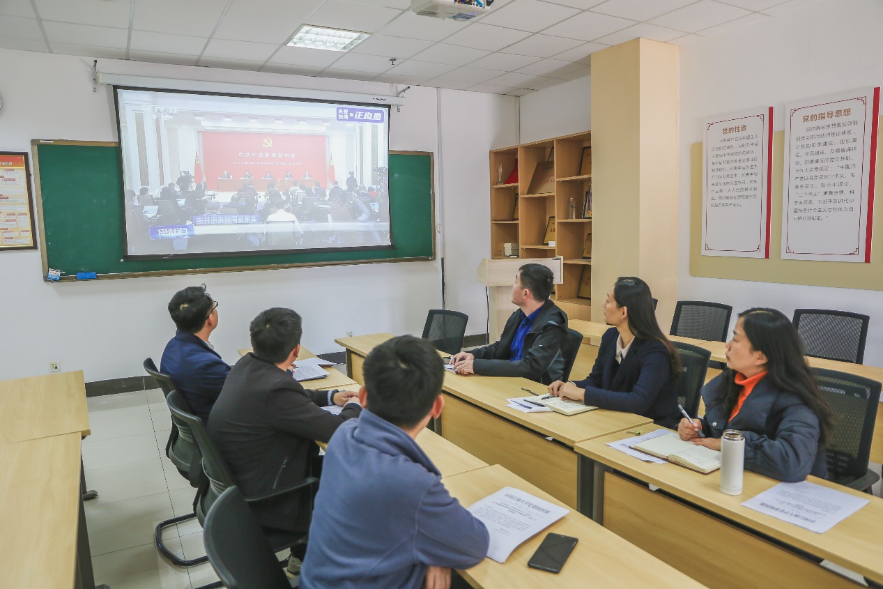 公司教职工党员收看新闻发布会现场 张蕾摄影