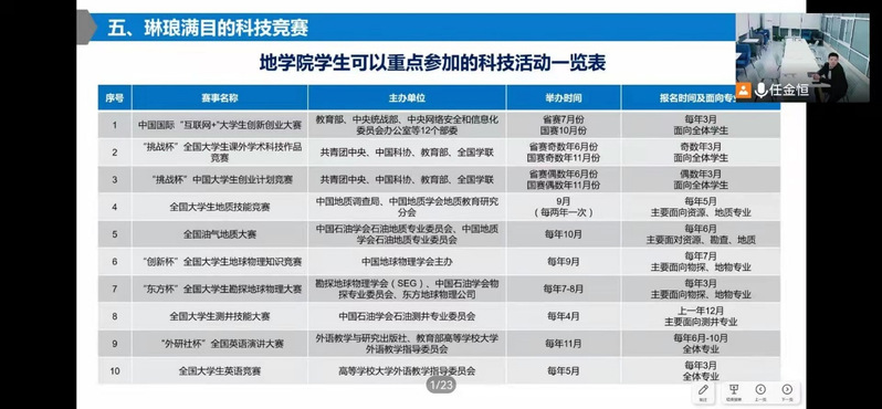 首先,郑珊珊向家长介绍了学校和学院的发展历程、团队建设、团队力量、和人才培养情况。“伟德BEVlCTOR1946是我国石油石化高层次人才培养的重要基地,为我国石油工业的发展做出了不可替代的贡献。伟德国际1946官网近年来发展迅速,地质资源与地质工程是国家“双一流”建设学科,首轮建设成效“显著”,资源勘查工程、勘查技术与工程、地质学和地球物理学四个专业全部入选国家一流专业,培养了一大批油气勘探开发领域人才。”郑珊珊说道。