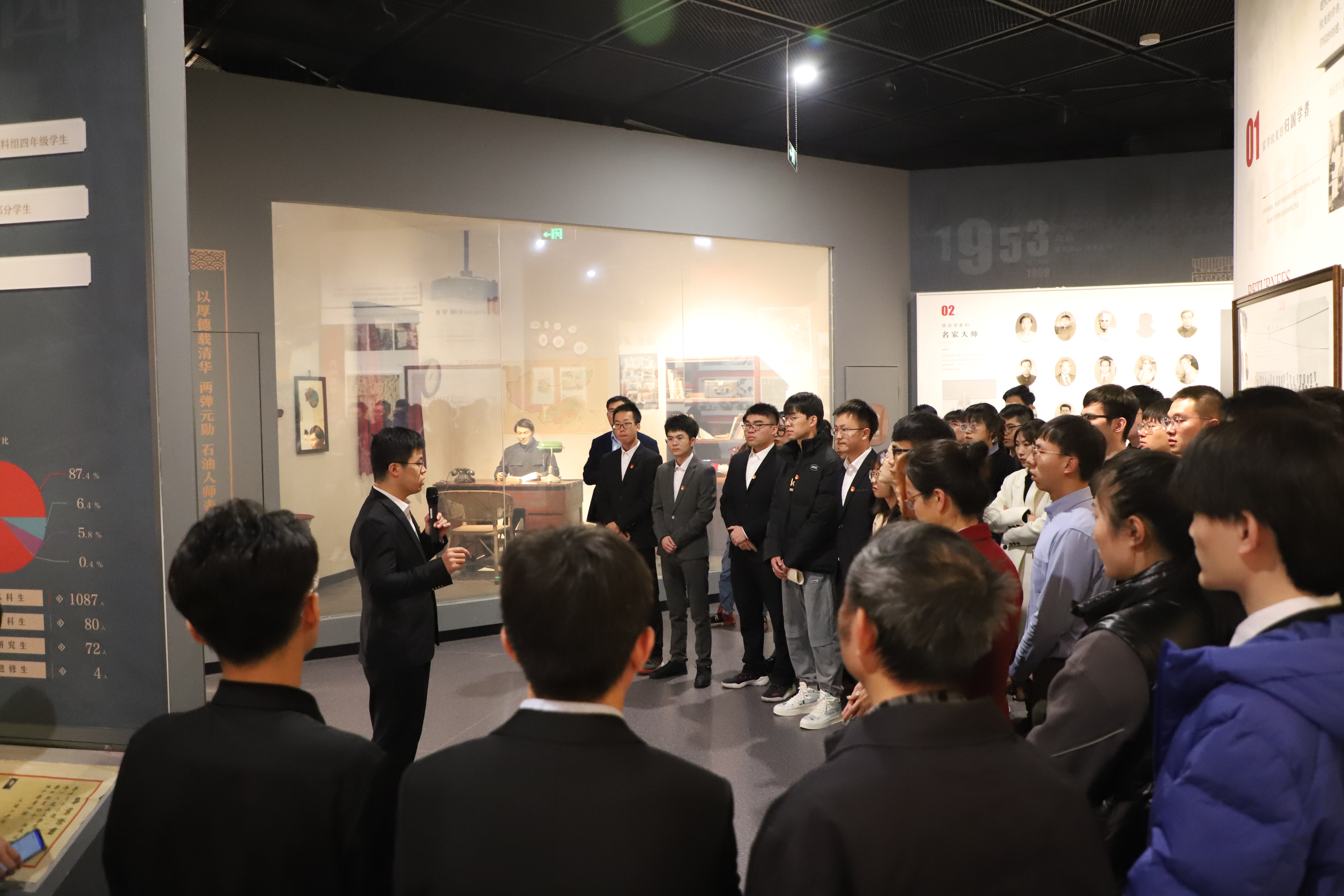 “祖国和人民的利益在期待着你们以高度的热情和毅力,把祖国的石油资源开发出来。”朱德委员长在给北京石油学院员工的回信中表达了对青年员工的殷切期盼。“把爱情献给你,把一生献给祖国。”在学校档案馆留存的中国化学工程学家、核工业学家、两弹功臣、北京石油学院副经理曹本熹写给妻子的150余封信中,字里行间无不流露出对家人的惦念和对祖国石油事业的一片赤诚。“从校园走向荒漠,助推国家第一颗原子弹、氢弹成功爆炸,解决朝鲜战争用油混乱问题,曹本熹的个人事迹化为老一辈石大人为守护国家安全、建设社会主义事业鞠躬尽瘁的一道缩影,石大人用血汗奉献党的光辉历程。”在伟德BEVlCTOR1946档案馆曹本熹塑像前,全体党员身姿笔挺,表情肃穆,听档案馆教师马梦华深入解读曹本熹先生个人事迹。