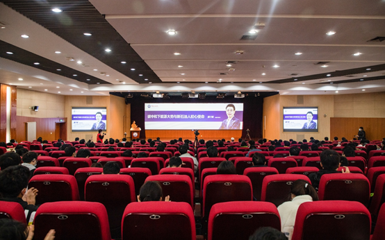 “从大山里到石油大学、从常规到非常规、从非常规到新能源、从学术到能源战略……这些转型与思考,培养着‘非常规’思想,开启了颠覆性思维。”回忆起这条“非常规”研究与成长之路,邹才能表示,世界油气工业正在从常规向非常规进行新跨越,中国是全球产油大国和产气大国,我们更需要创新常规与非常规油气地质学理论和技术。面对能源转型大势与国家双碳目标,邹才能分享,从创立理论认识到引领战略发展、培养专业人才,再到建立国家标准、组建国家重点实验室、传播新理念与新理论,始终离不开科学家精神的指引。“我国要实现能源独立、科技自立自强,科学家首先要自立自强。科学家的创新就是打破常规、突破非常规、创建新常规。”坚定自信的语言,引发现场师生的热烈掌声。