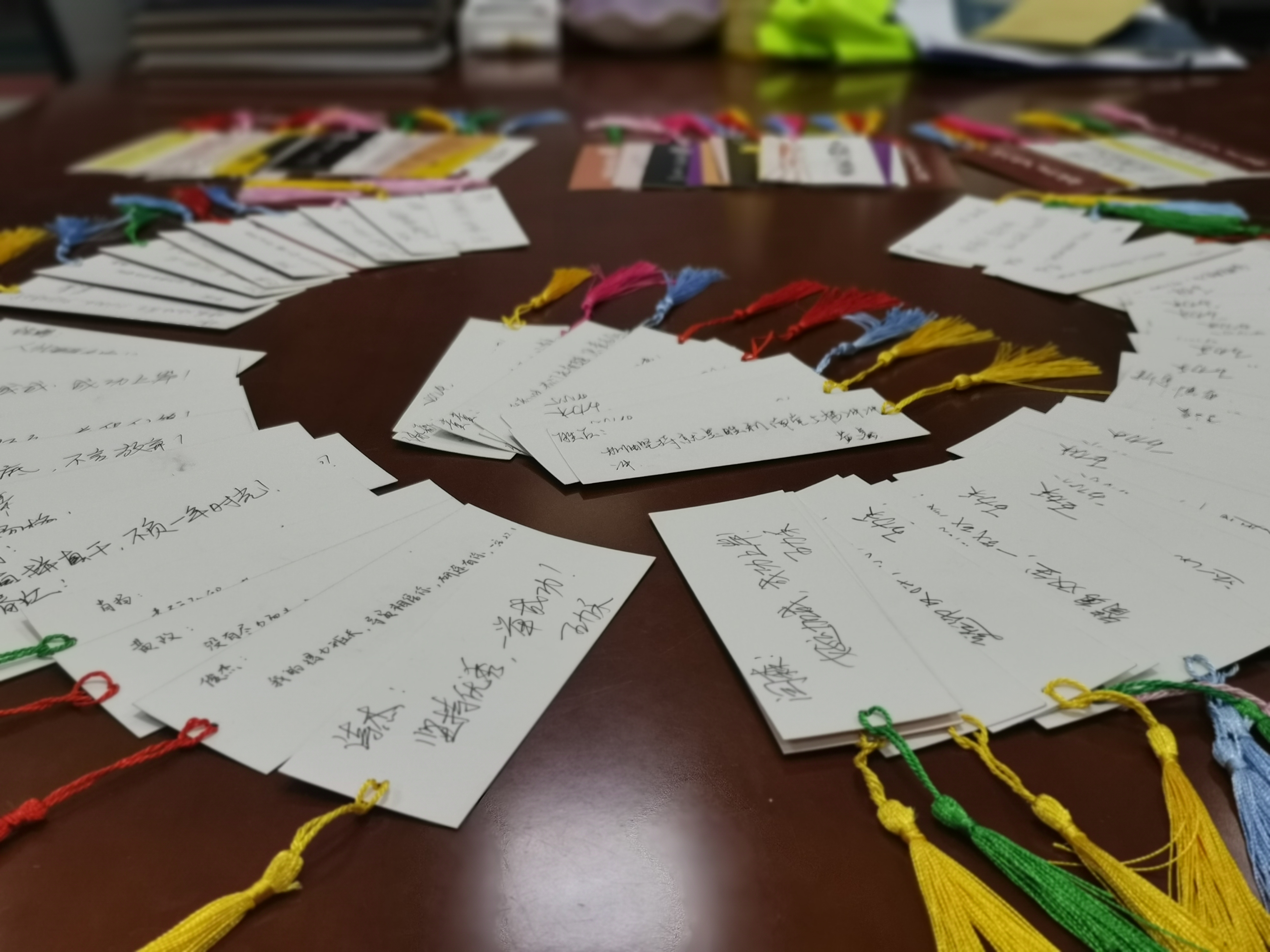 据悉,学院2018级先后举办考研经验交流会、考研形势分析会等形式,为员工报考研究生提供支持。在此次慰问前,2018级辅导员还为每名考研员工手写了祝福和叮嘱的书签送给考研员工,鼓励他们顶住压力,坚持到底。