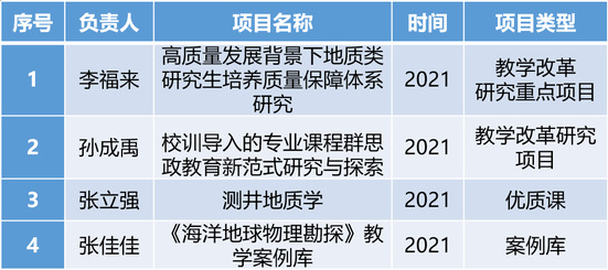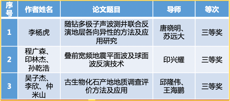 新增省优博论文3篇,省优硕论文4篇;中国地球物理学会杰出博士学位论文奖2篇;山东省优秀专业学位研究生专业实践成果奖、山东省研究生优秀成果奖3项。