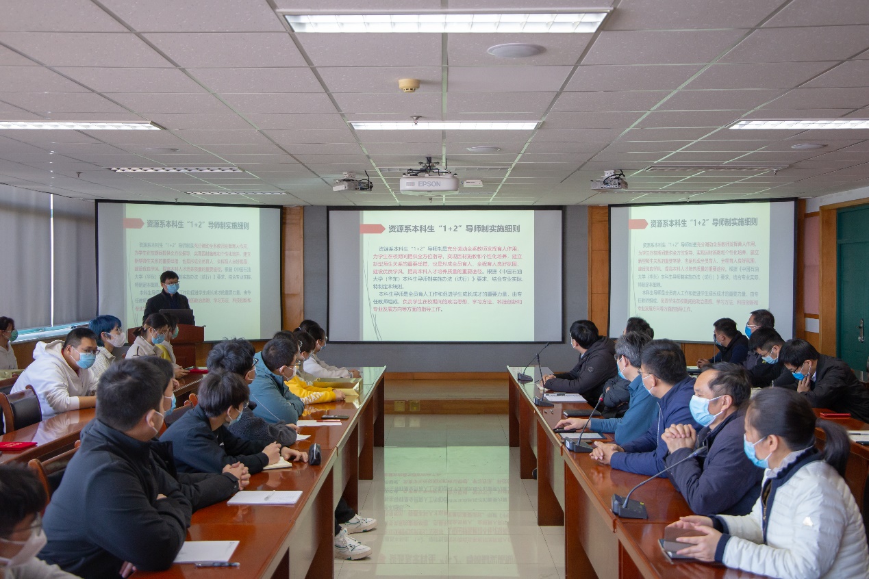资源系副主任刘景东介绍了“1+2导师制”实施细则,他说道:“导师制是充分调动全系教师发挥育人作用,为员工在校期间提供全方位指导,建立新型师生关系的重要举措,也是建设优良学风,提高本科生人才培养质量的重要途径。”