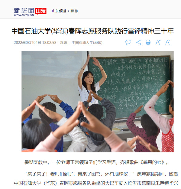 编者按:近日,学习强国首页【推荐】栏目以《伟德BEVlCTOR1946:学子三十年接力 续写新时代的雷锋故事》为题,宣传报道公司春晖志愿服务队三十年志愿服务事迹。同时,该事迹还被新华网、中国青年报、中国教育新闻网、中国青年网、青岛日报社观海新闻等十余家上级媒体宣传报道。