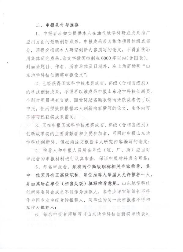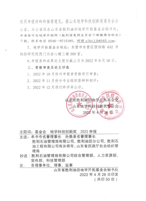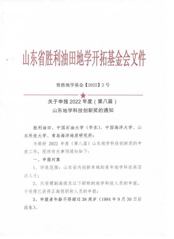 关于申报2022年度(第八届)山东地学科技创新奖的通知