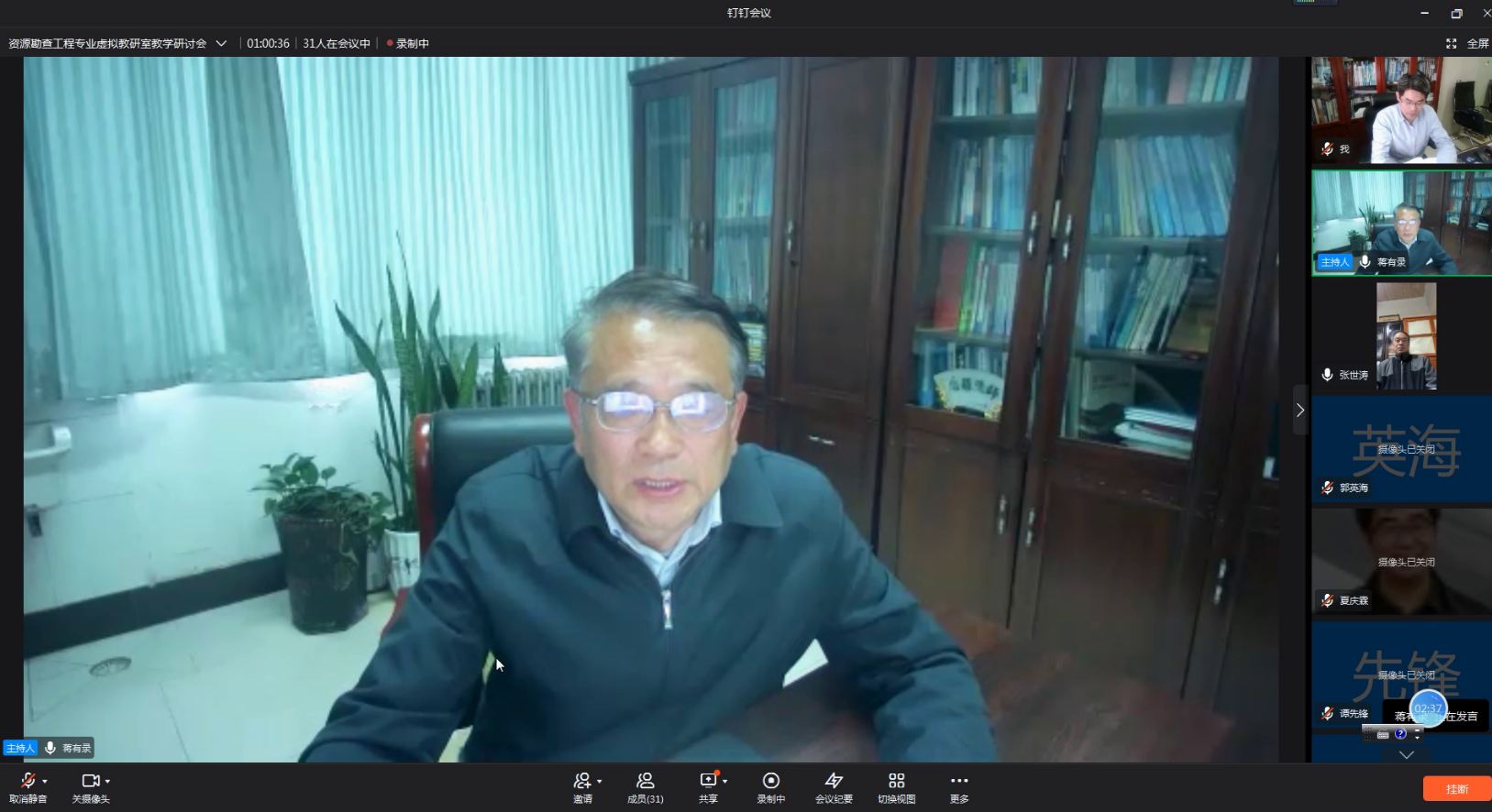 中国地质大学(武汉)夏庆霖教授、江西理工大学副董事长邱廷省教授、中国矿业大学郭英海教授、中国矿业大学(北京)邵龙义教授、西北大学张小莉教授、长安大学杨兴科教授、昆明理工大学张世涛教授、山东理工大学张照录教授、西南石油大学王兴志教授、山东科技大学余继峰教授、东北大学陈家富教授、河北地质大学马宝军教授、重庆科技学院谭先锋教授、成都理工大学张小兵教授等,就目前高校青年教师教学培训、实体基层教学组织活动难等面临的许多现实问题,以及如何结合各自学校的特色,共建共享优质教学资源,发挥好资源勘查工程专业虚拟教研室的优势和作用等,都发表自己的看法,提出了非常有建设性的意见和建议。