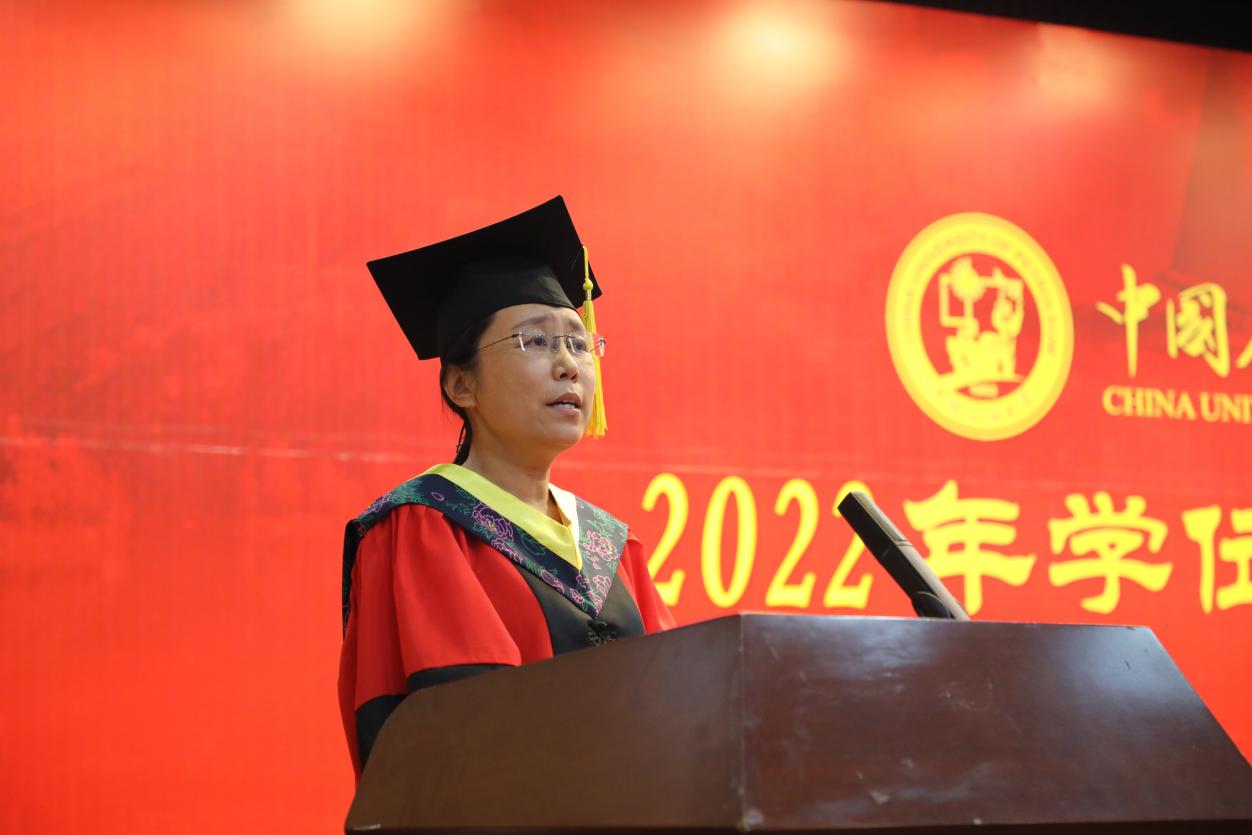 毕业典礼暨学位授予仪式上,经理刘华教授发表了热情洋溢、充满祝福和勉励的讲话。刘华教授、刘可禹教授、宗兆云教授共同为获得学位的毕业生颁发学位证书,拨正流苏。