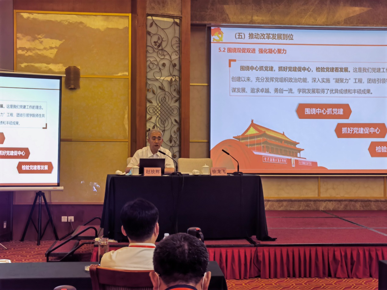 7月22日下午,赵放辉以“一流党建引领一流团队建设”为题目,从党组织领导和运行机制到位、政治把关作用到位、思想政治工作到位、基层组织制度执行到位、推动改革发展到位等五个到位详细介绍了学院“党建示范创建和质量创优”工作、在一流党建和一流团队建设过程中双促双进的经验做法,交流“围绕中心抓党建、抓好党建促中心、检验党建看发展”的思考和体会。赵放辉还就党建“双创”申报、建设与验收进行了专题辅导,赢得现场参训学员的热烈掌声和高度认可。课后,学员纷纷主动与赵放辉书记进行深入交流。